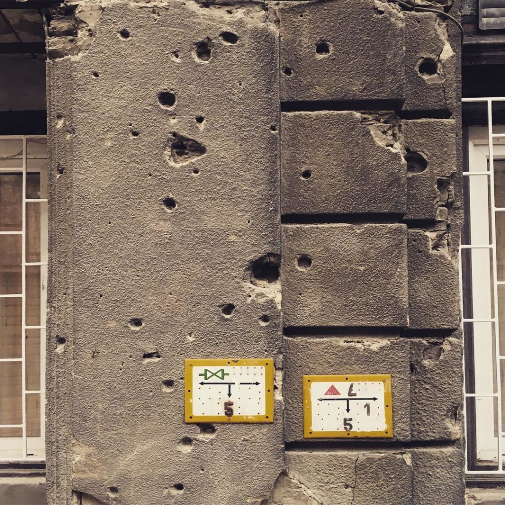Bullet holes from 1956 (maybe even WWII) are not an unusual sight here